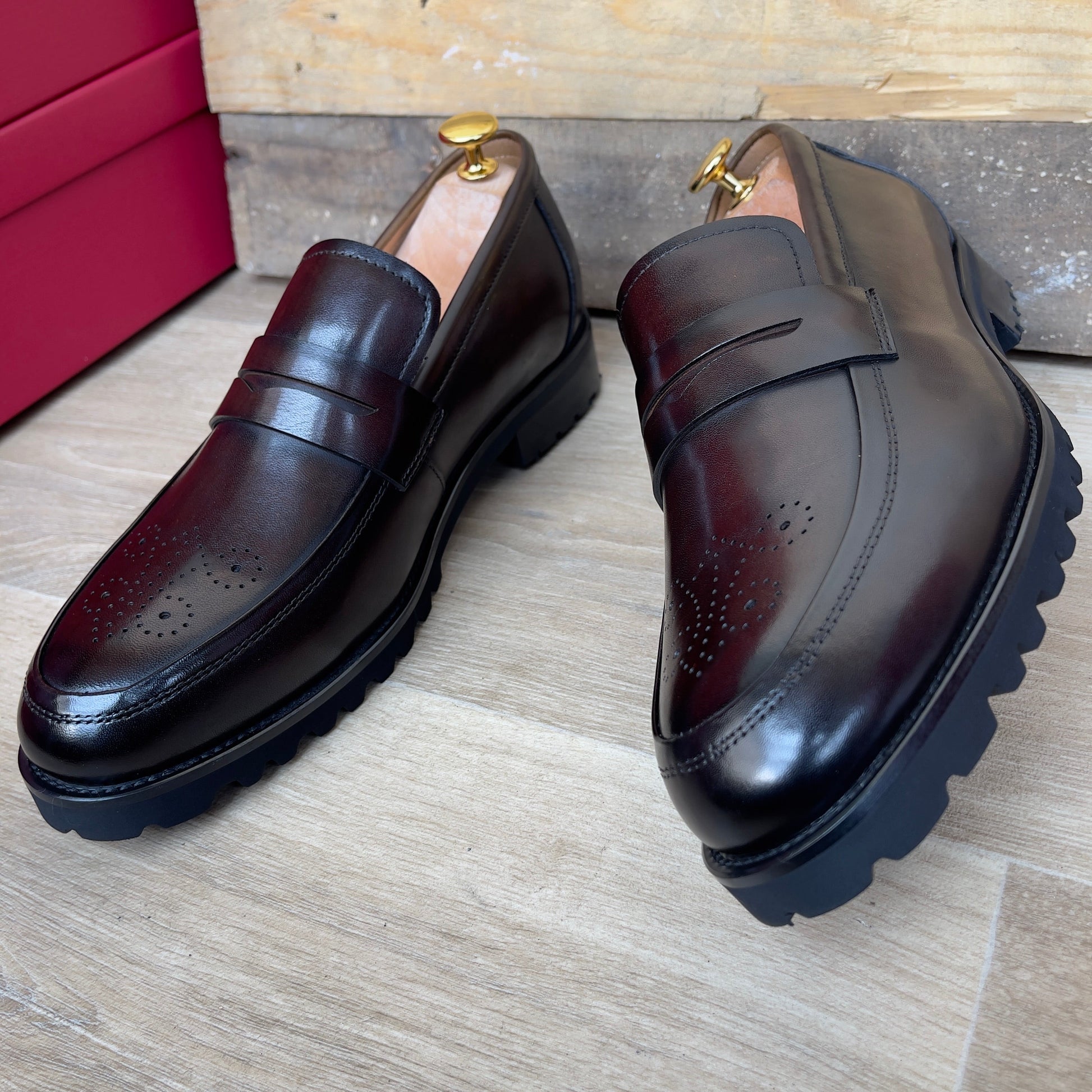 Mocassin en cuir marron semelle commando